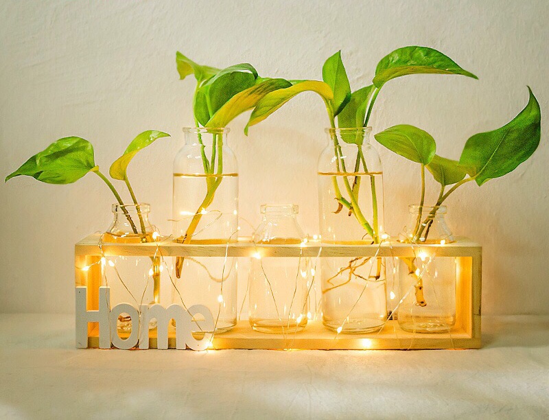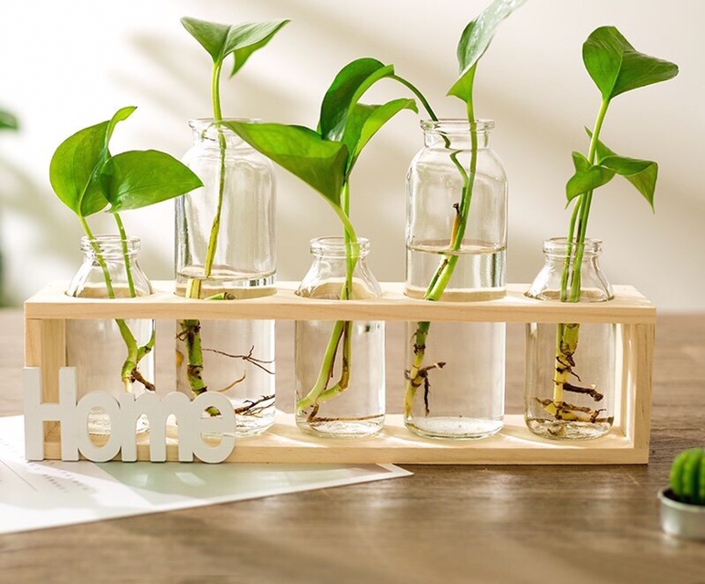 Chất liệu: Bình thủy tinh, hộp gỗ thông.