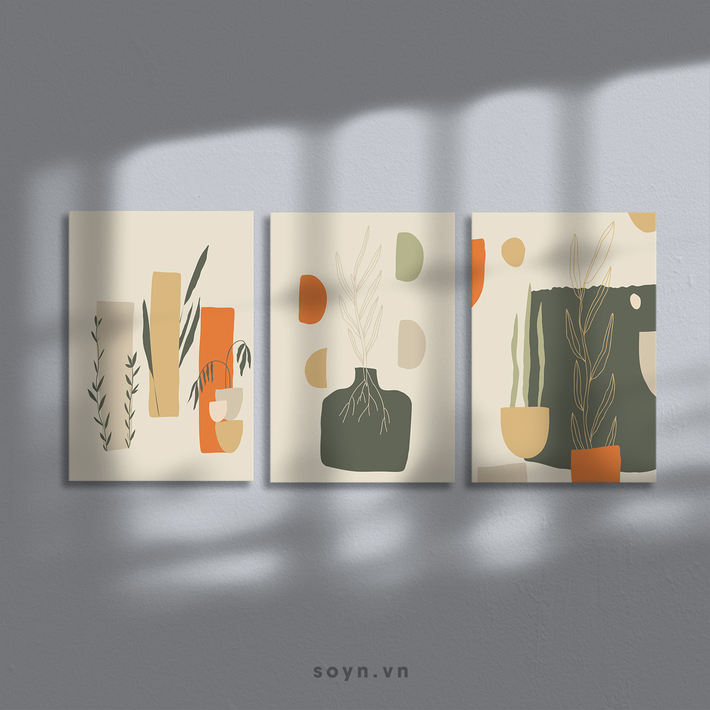 Bộ tranh Abstract, Minimalism, Leaves, Modern art, SE458