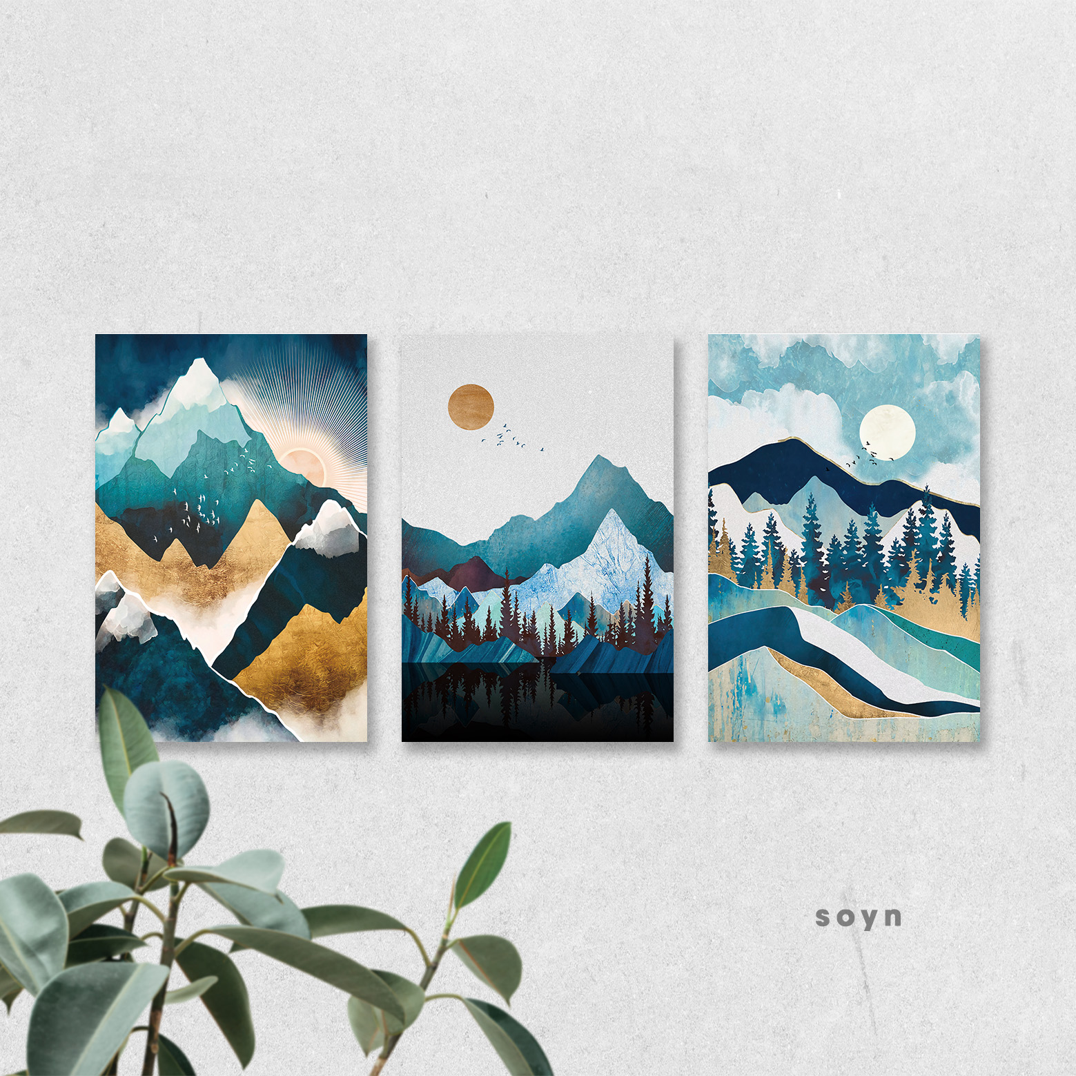 Bộ tranh Abstract, Mountain, Gold, Blue, Forest, SE307