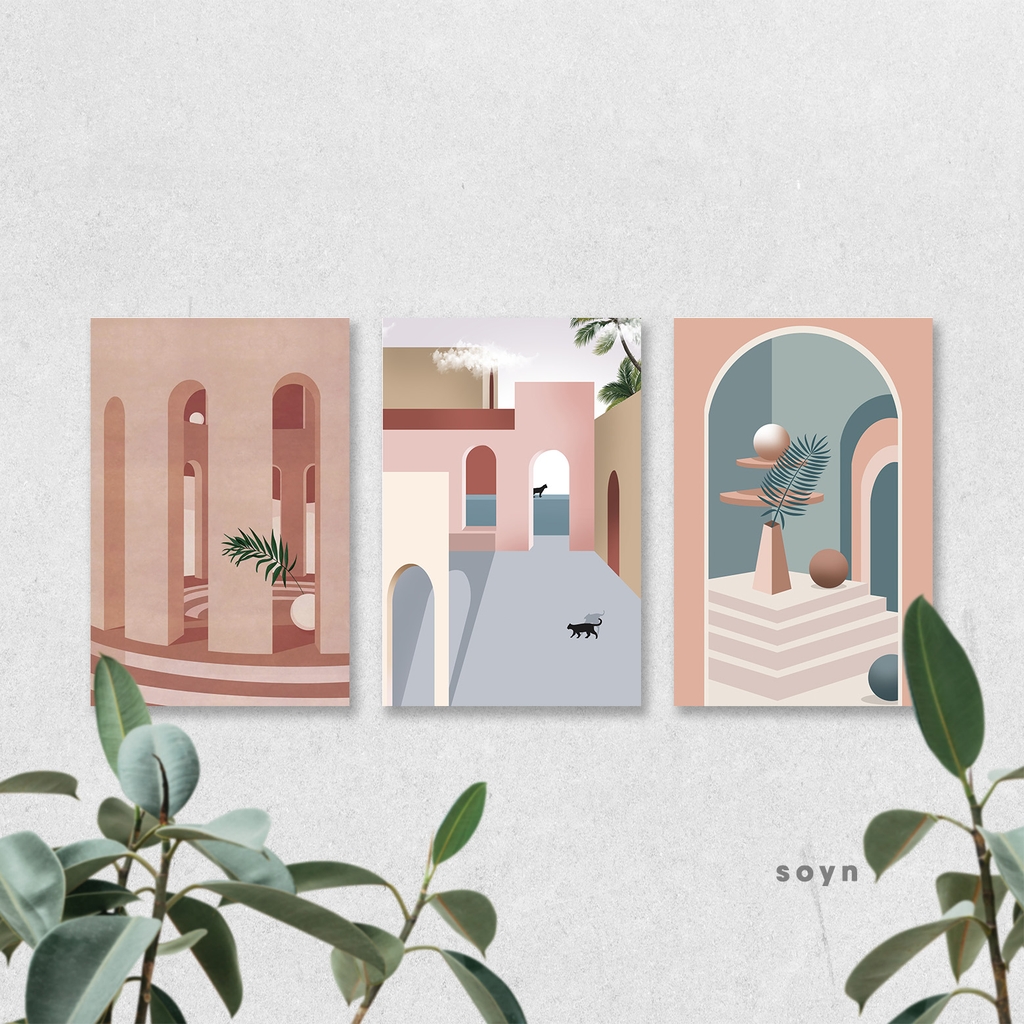 Kích thước: 3 bức, mỗi bức có kích thước 40x60cm.