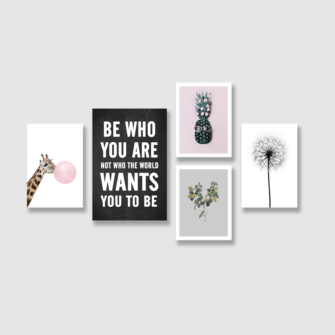 Kích thước: Từ trái qua 30x45cm, 40x60cm, 30x40cm, 30x40cm, 30x45cm. Tổng kích thước ngang 160cm, dọc 90cm (khoảng cách mỗi tranh 10cm).