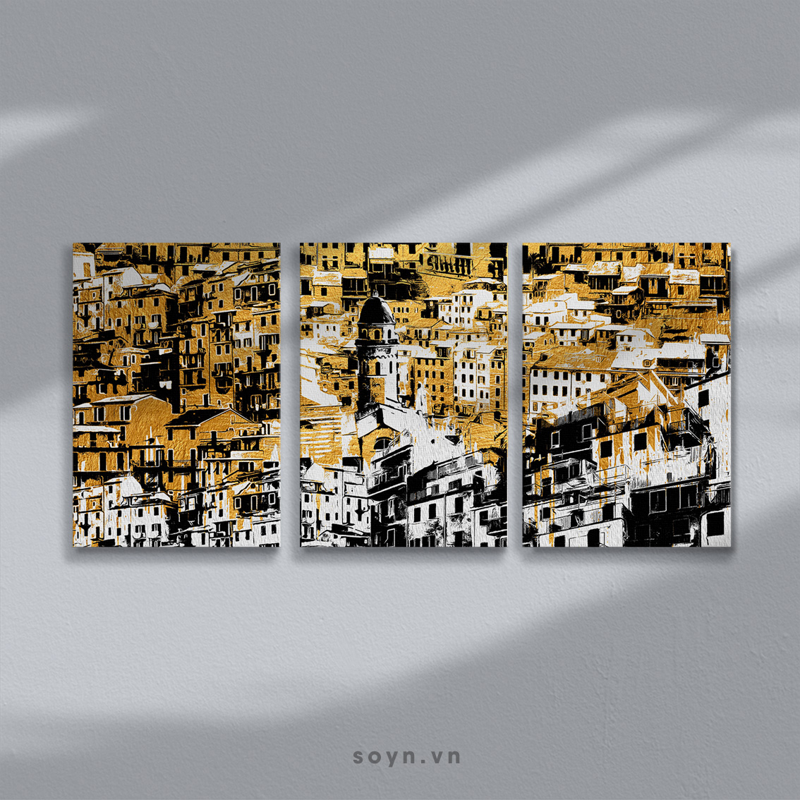 Bộ tranh mang phong cách hiện đại, tạo điểm nhấn trong không gian ngôi nhà bạn, làm nổi bật bức tường phòng khách không còn đơn điệu.
