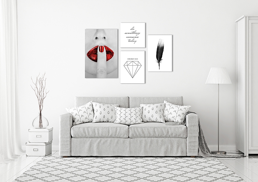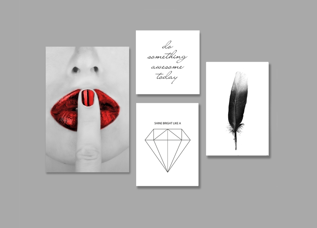 Kích thước: 1 bức 40x60cm, 1 bức 30x30cm, 1 bức 30x40cm, 1 bức 30x45cm, tổng kích thước 120cm x 80cm, khoảng cách mỗi tranh 10cm.