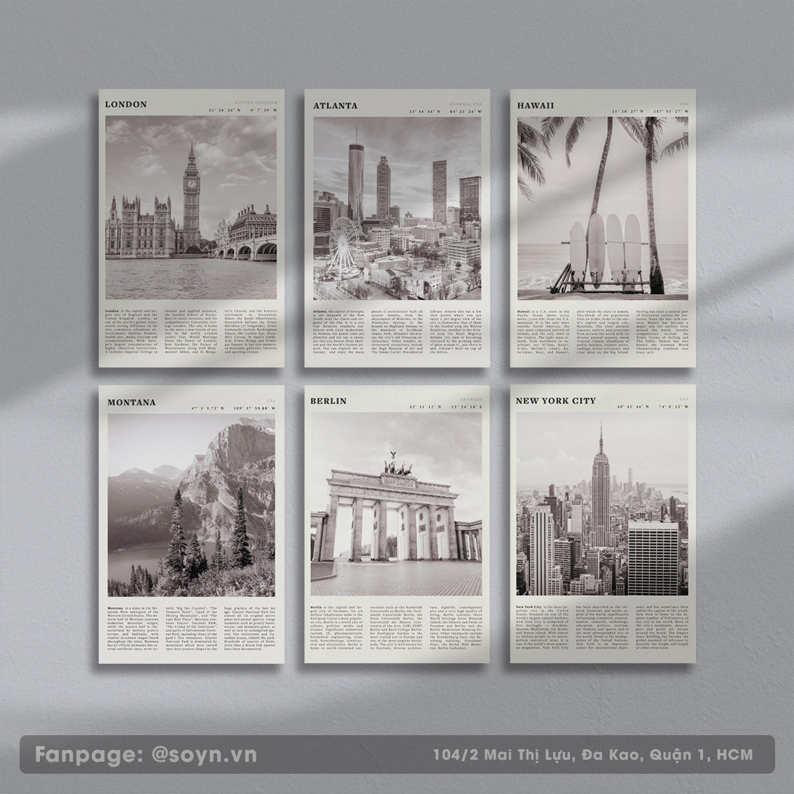 Kích thước:6 bức 30x45cm. Tổng kích thước cả set (bao gồm khoảng cách treo tranh 5cm) có chiều ngang 100cm, chiều cao 95cm.