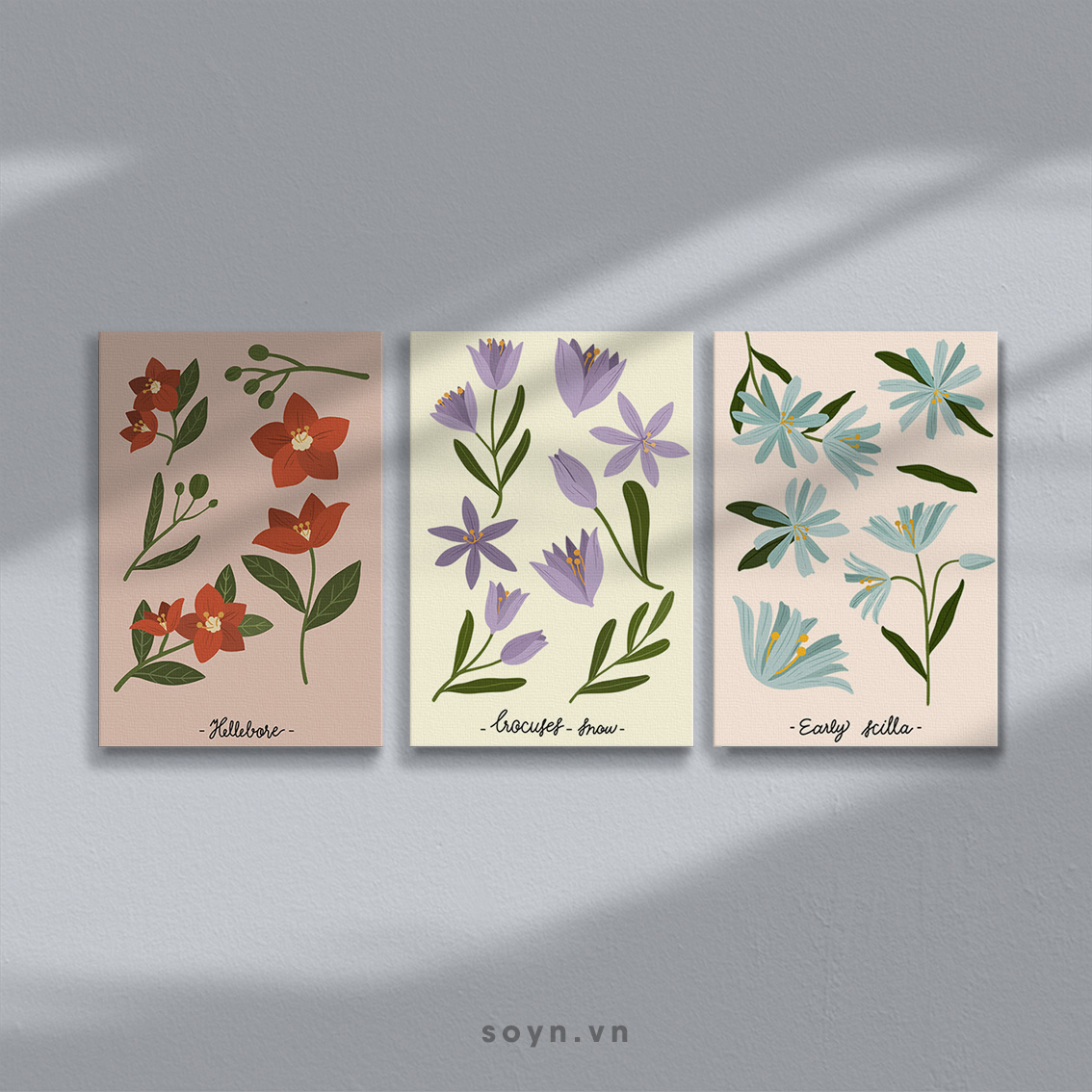 Bộ tranh Leavrs, Flower, Simple, Classic, SE481