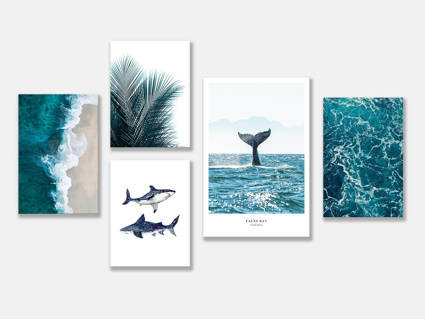 Kích thước: Từ trái qua 30x45cm, 30x40cm, 30x40cm, 40x60cm, 30x45cm, tổng kích thước ngang 160cm, dọc 90cm (khoảng cách mỗi tranh 10cm).