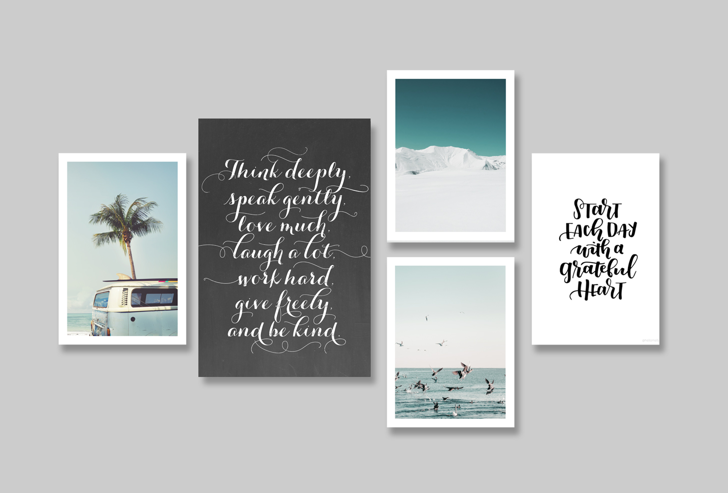 Kích thước: Từ trái qua 30x45cm, 40x60cm, 30x40cm, 30x40cm, 30x45cm. Tổng kích thước ngang 160cm, dọc 90cm (khoảng cách mỗi tranh 10cm).