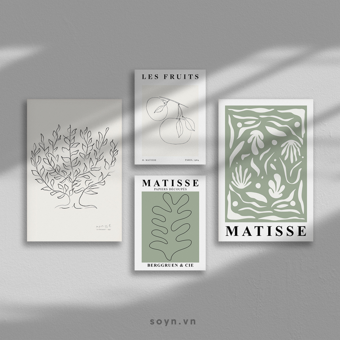 Kích thước: 2 bức 40x60cm, 2 bức 30x40cm. Tổng kích thước cả set (bao gồm khoảng cách treo tranh 5cm) có chiều ngang 120cm, chiều cao 85cm. Kích thước phù hợp với mảng tường sau sofa (ngang 1m8 - 220cm), giường ngủ (1m8 - 2m) hoặc mảng tường trang trí không gian hiện đại bất kỳ.