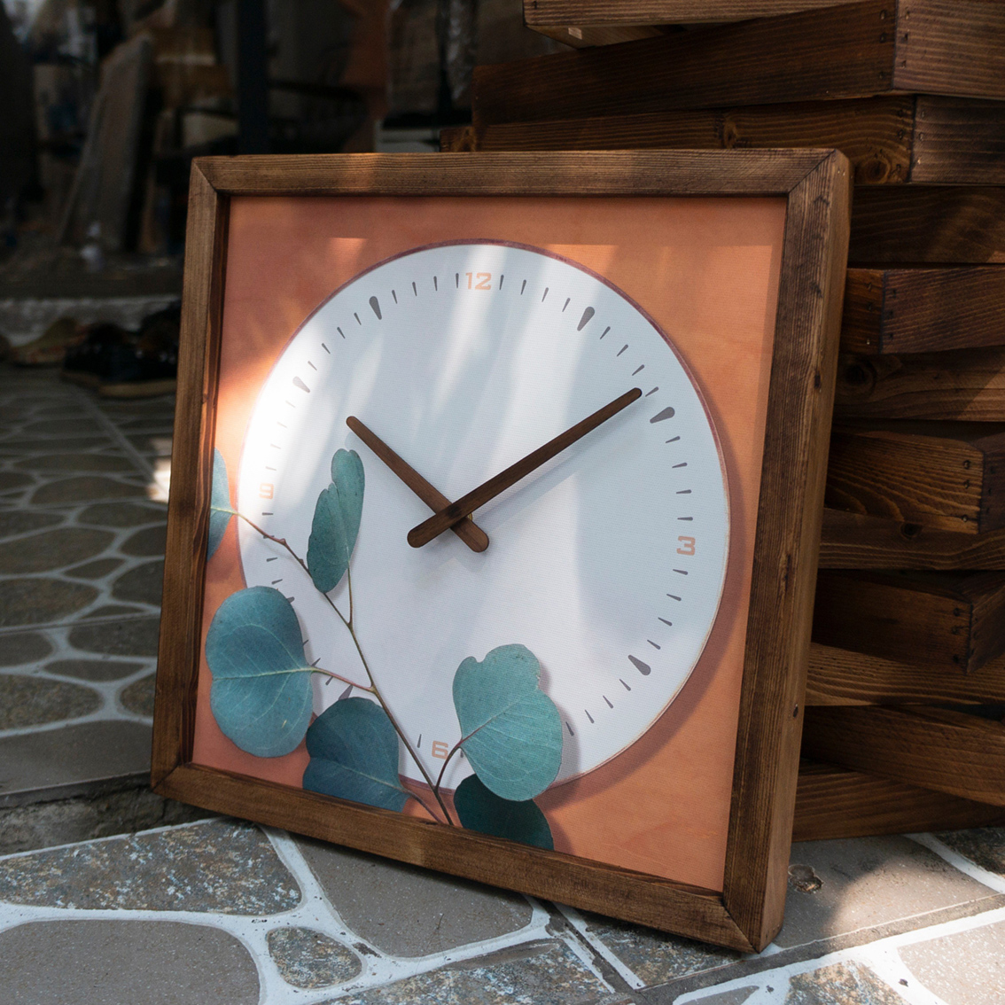 - Bộ kim đồng hồ làm bằng gỗ óc chó.