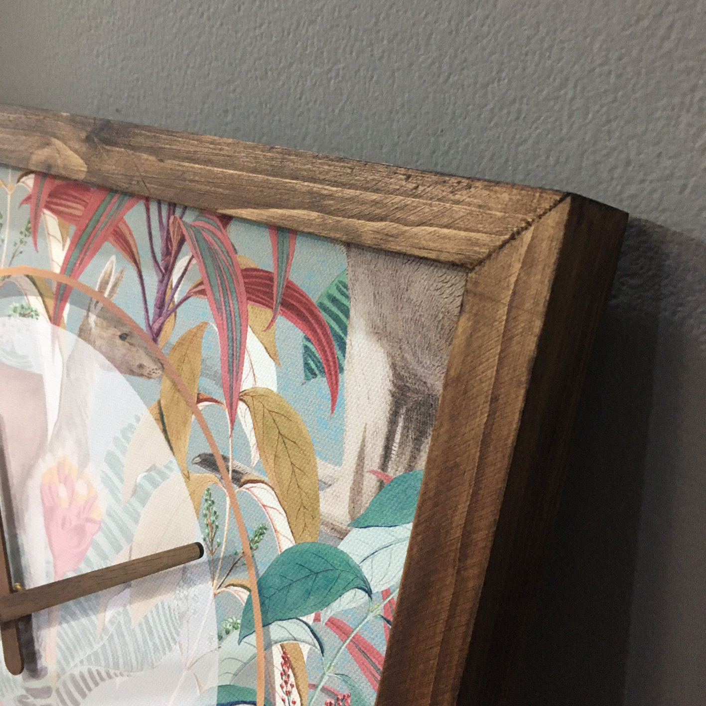 - Sản phẩm gồm tranh được in trên nền vải canvas, khung viền gỗ tự nhiên, máy kim trôi không gây tiếng ồn và điểm thú vị nữa là bộ kim đồng hồ cũng được làm bằng gỗ rất tỉ mỉ.