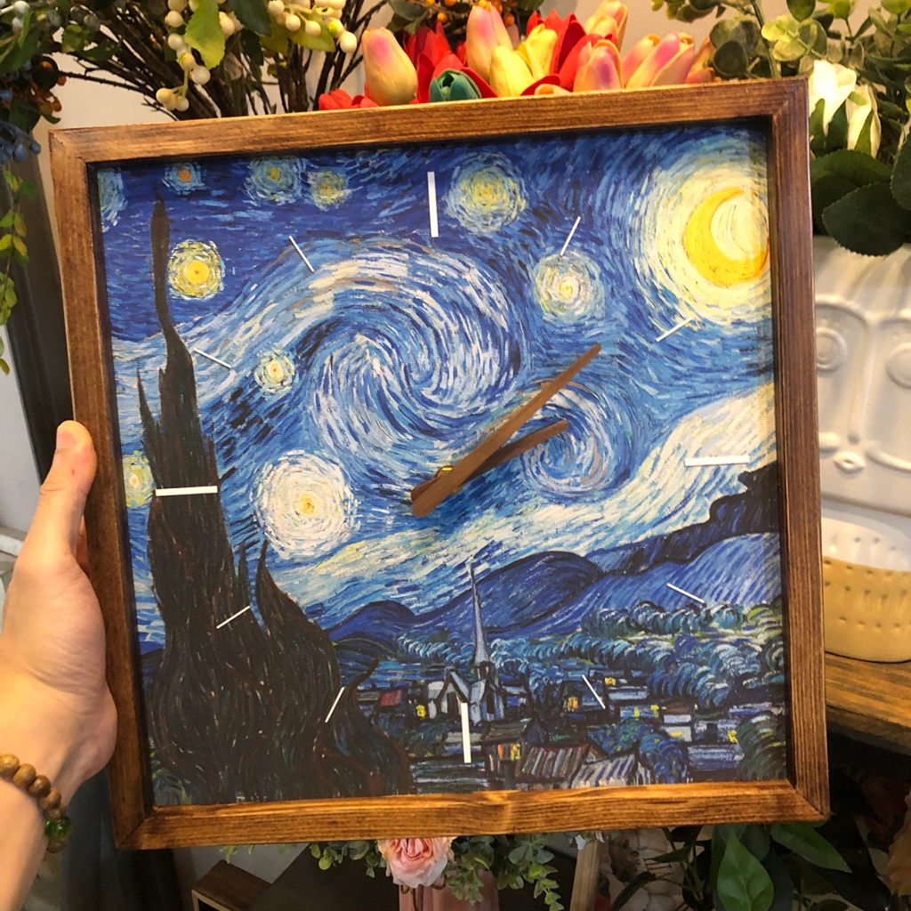 Đồng hồ treo tường gỗ nghệ thuật Van Gogh | Tranh đồng hồ trang trí tường | Quà tặng tân gia | Artclock Soyn VG07