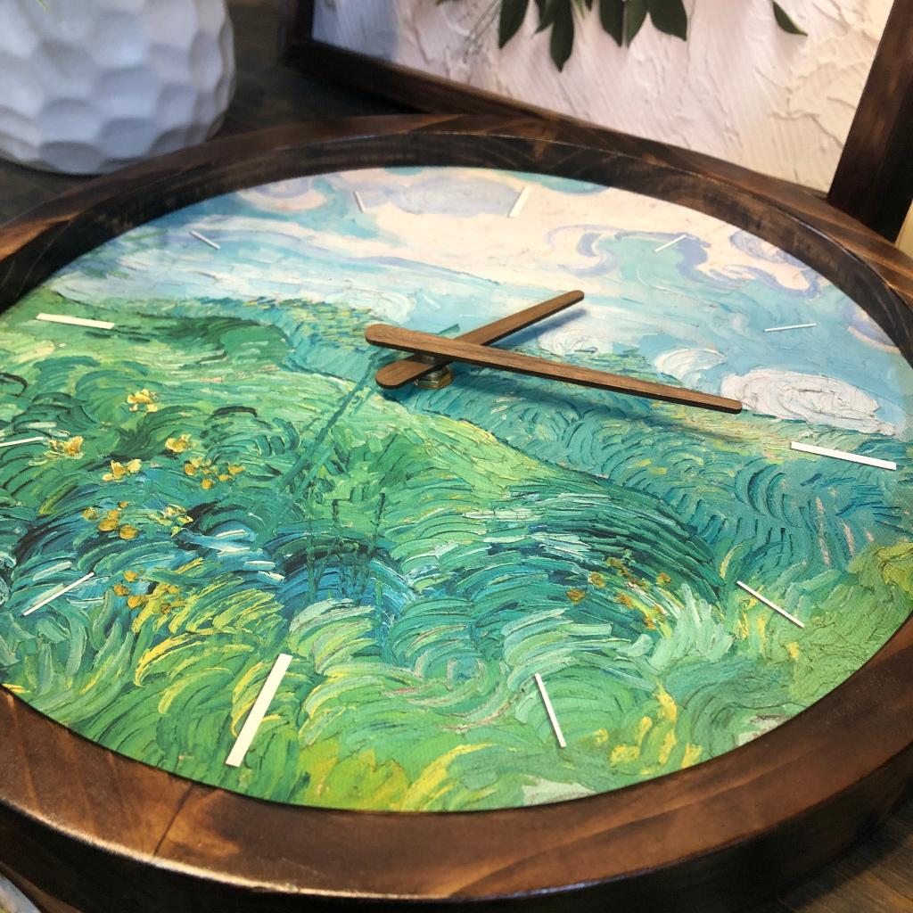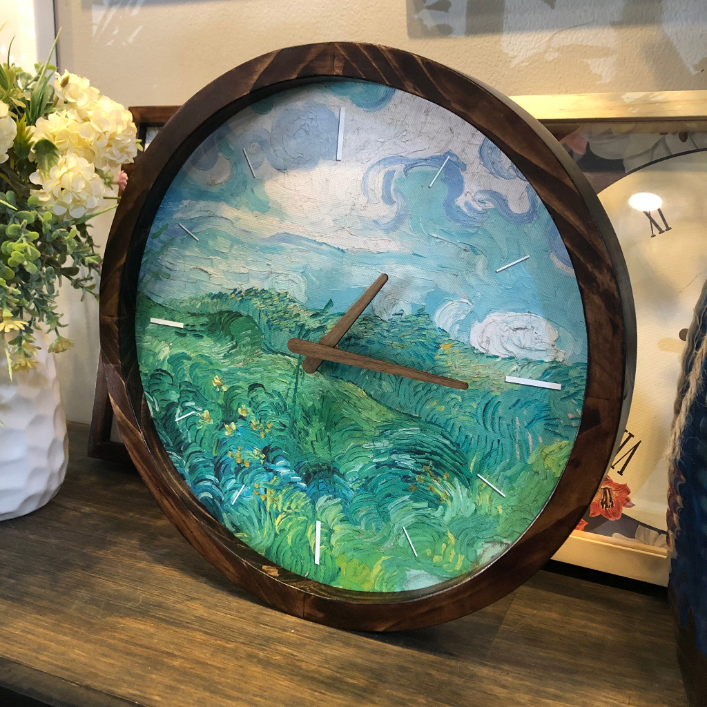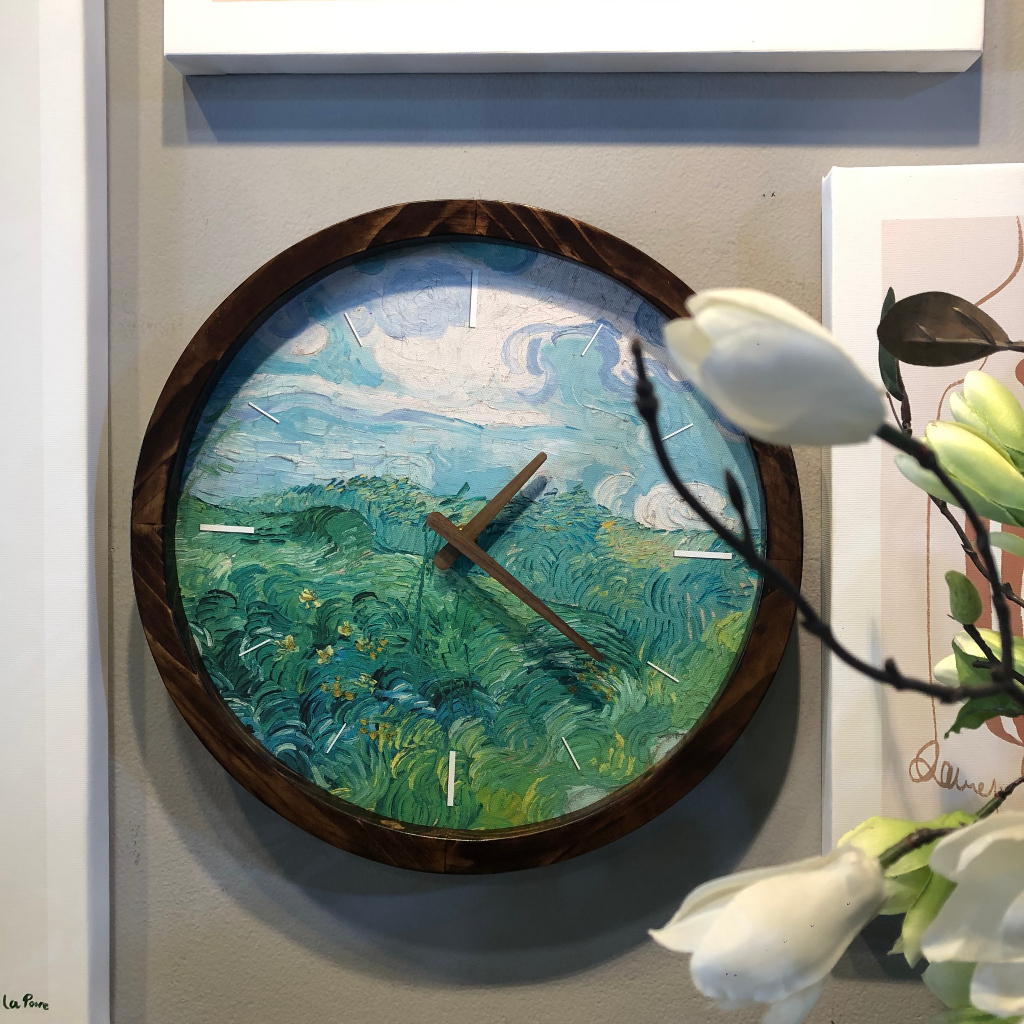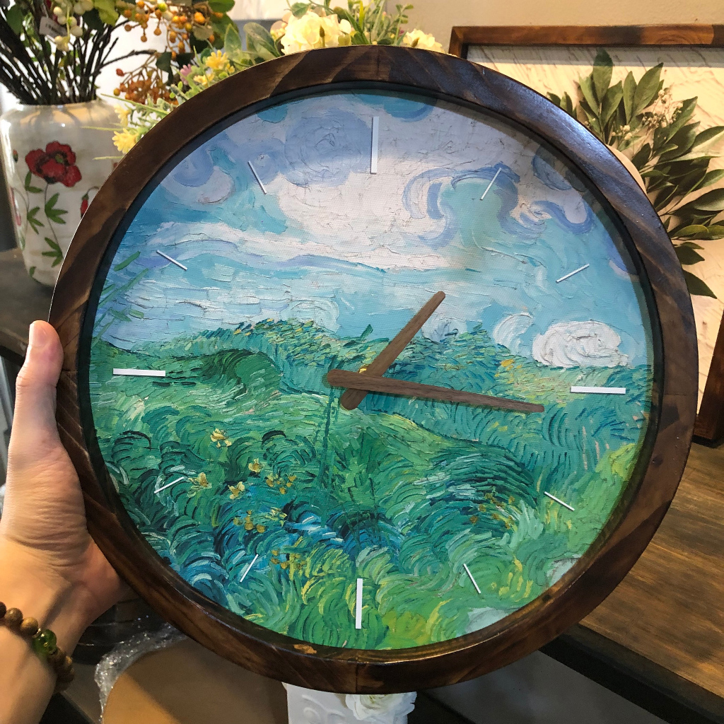- Sản phẩm gồm bề mặt tranh in trên chất liệu Cotton Canvas nhập khẩu bề mặt nhám thẩm mỹ cán lên tấm gỗ dày, khung viền gỗ thông tự nhiên dày dặn, máy kim trôi không gây tiếng ồn và điểm thú vị nữa là bộ kim đồng hồ cũng được làm bằng gỗ rất tỉ mỉ.