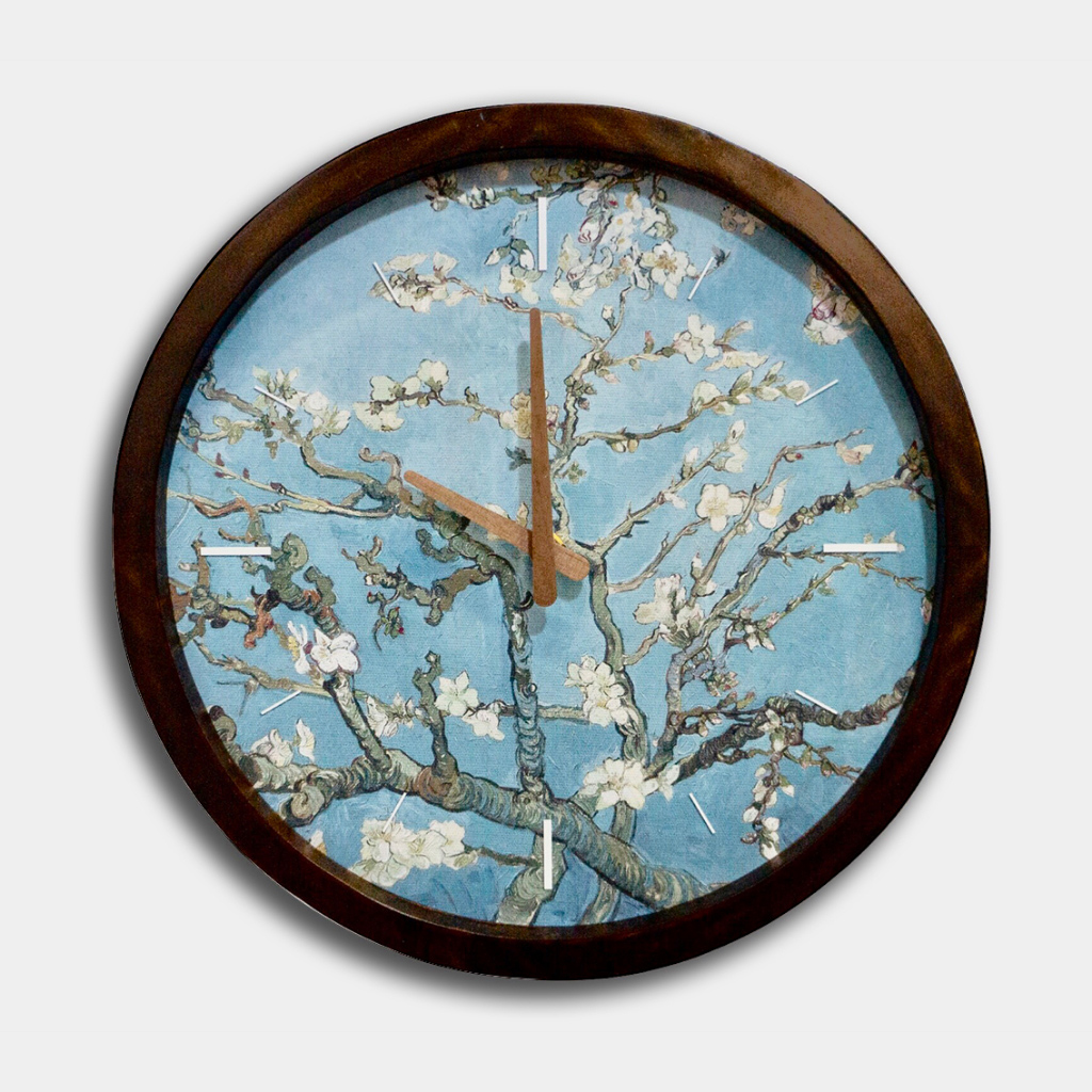 - Sản phẩm gồm bề mặt tranh in trên chất liệu Cotton Canvas nhập khẩu bề mặt nhám thẩm mỹ cán lên tấm gỗ dày, khung viền gỗ thông tự nhiên dày dặn, máy kim trôi không gây tiếng ồn và điểm thú vị nữa là bộ kim đồng hồ cũng được làm bằng gỗ rất tỉ mỉ.