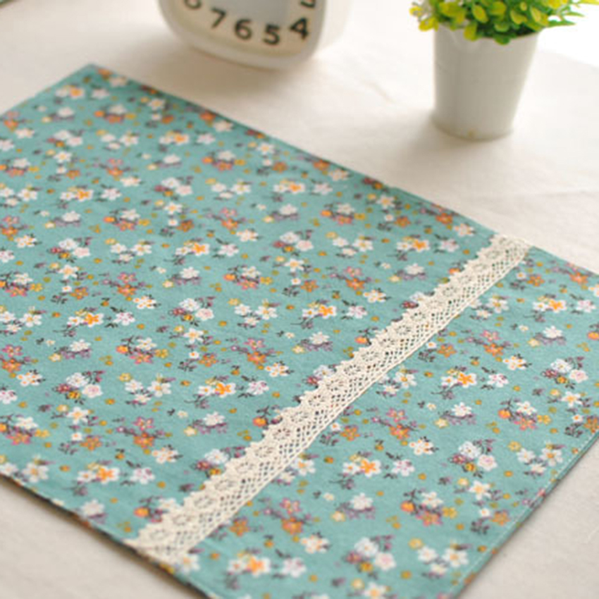 Tấm lót bàn ăn họa tiết hoa nhí xanh có thêu ren (DN05)