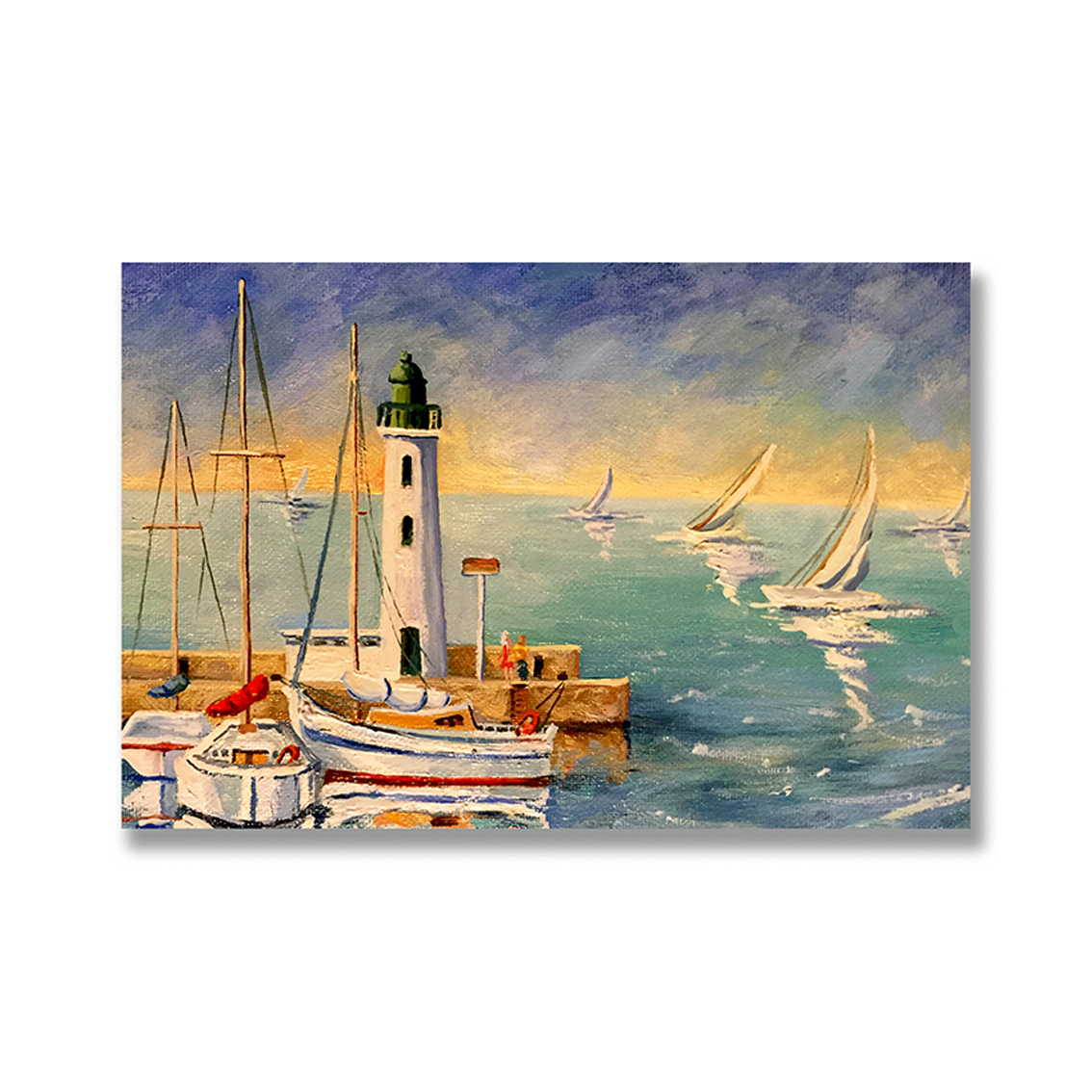 Tranh Canvas Ocean, Boat, Lighthouse SNS329