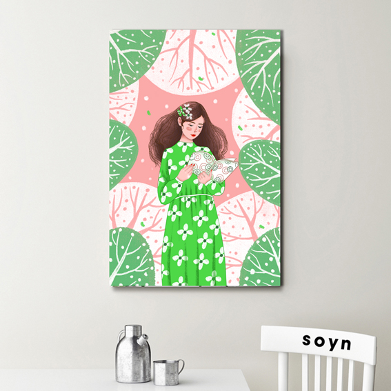 Tranh Girl, Leaves, Reading, Green, Beauty S0115