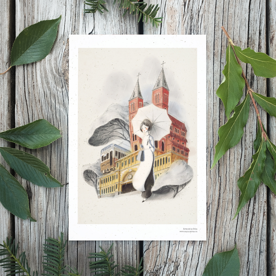 Poster được in digital trên giấy mỹ thuật Eco Heim độ dày 220gsm khổ A3 (29,7 x 42,9 cm).